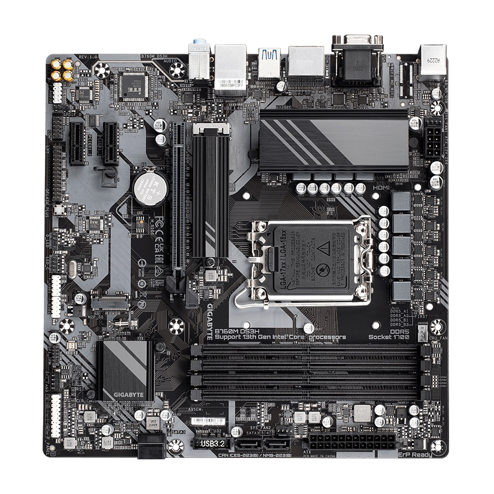GIGABYTE B760M-DS3H-DDR5 7600MHz HDMI DP MATX 1700P