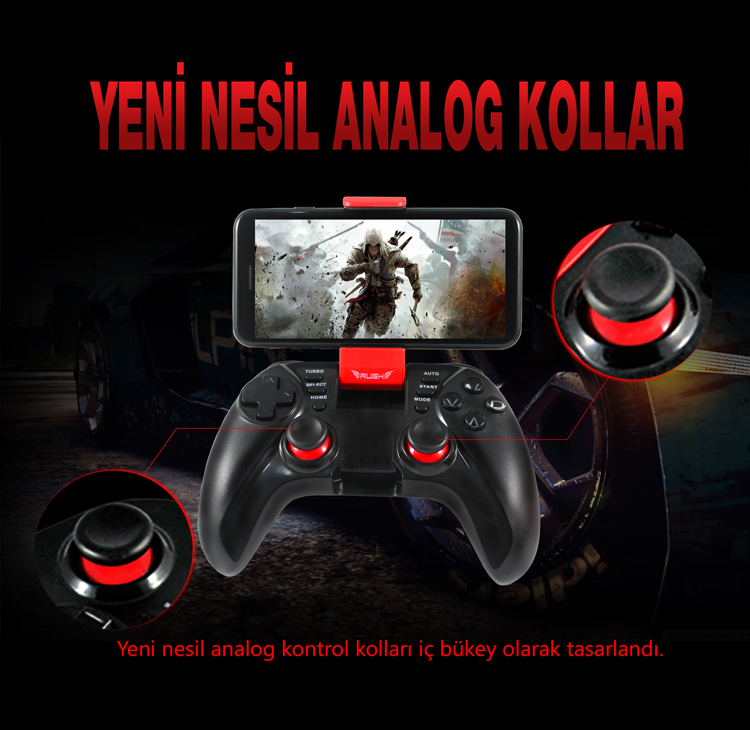 Rush Apache Pro Gbt444 Oyun Kolu , Analog kontrolcüleri her iki baş parmağınız ile kolayca erişebileceğiniz şekilde konumlandırılmıştır. Ayrıca özel yeni nesil iç bükey olarak tasarlanan analog kontrol tuşları sayesinde uzun oyun saatlerinde parmaklarınız üstünden kaymaz ve oyun keyfinizi kaçırmaz.