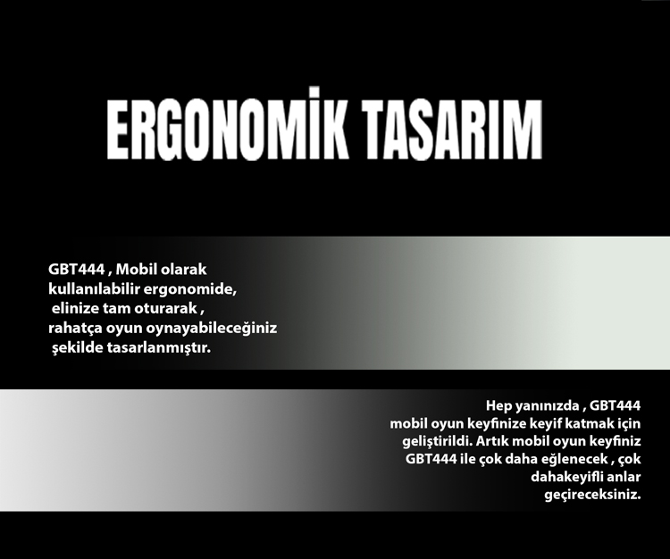 Hep yanınızda , GBT444 mobil oyun keyfinize keyif katmak için geliştirildi. Artık mobil oyun keyfiniz GBT444 ile çok daha keyifli anlar geçireceksiniz.
