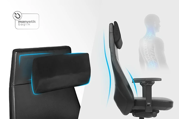 Ayarlanabilir, boyun ve bel yastıklarınızı kendinize en uygun şekilde konumlandırabilmeniz için manyetik olarak tasarlandı.