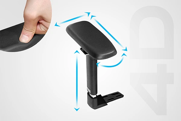 Kolçaklarımız metal iç iskelet, metal bağlantı demiri ve yumuşak dokunuşlu esnek PU malzemeden yapılarak en uygun pozisyonu bulmanızı sağlamak için dört farklı yönde ayarlanabilir.