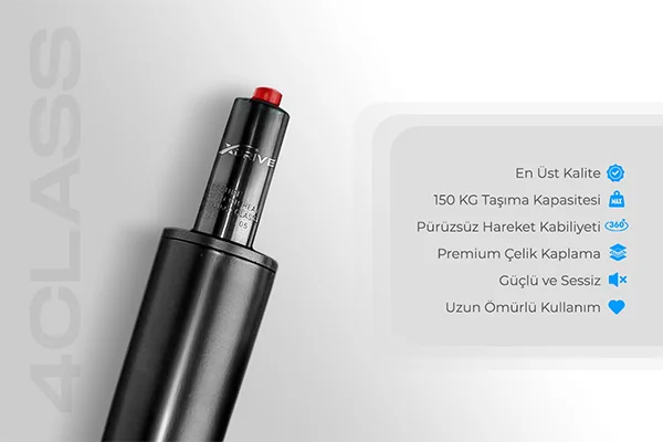 Bu olağanüstü dayanıklılığa sahip sistem, titiz bir ısı işleminden geçirilmiş ve tam 600.000 oturum üzerindeki testlerden başarıyla geçmiştir.Class 4 amortisör sistemi, çalışma sandalyelerinde kullanılan yüksek kaliteli ve dayanıklı bir teknolojidir. Bu sistem, yüksek kaldırma kapasitesi, istikrar, güvenlik ve kullanıcı konforu sağlar. Kullanıcıların oturma yüksekliğini kişiselleştirmesine ve uzun süre konforlu bir şekilde oturmasına olanak tanır. xDrive olarak, bu teknolojiyi ürünlerimizin temel bir özelliği olarak sunuyoruz ve aynı zamanda bu üstün kaliteyi kanıtlayan uluslararası SGS ve BIFMA testlerinden başarı sertifikalarına sahibiz.